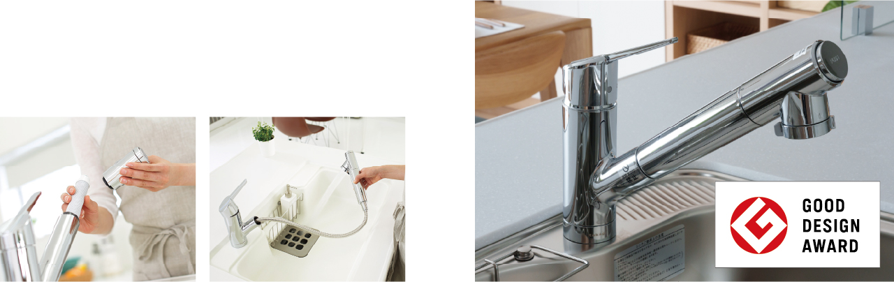 簡単操作で美しいフォルムの水栓。