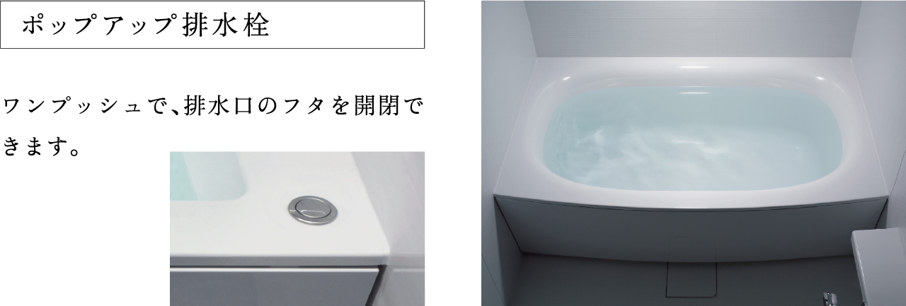 なめらかな曲線がソフトな印象を与えるシンプルなデザイン。浴槽上部を最大限広くとった、ゆったり入浴できる形状です。