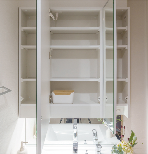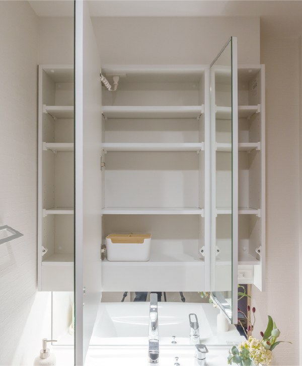 収納力の高いミラーキャビネットや