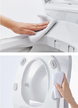 おそうじのしやすさにこだわり、汚れの入りやすいスキマを減らしました。汚れがたまりやすい便座の合わせ部※を継ぎ目のない設計に。手早く、ラクにおそうじできるので、いつでもここちよく使えます。