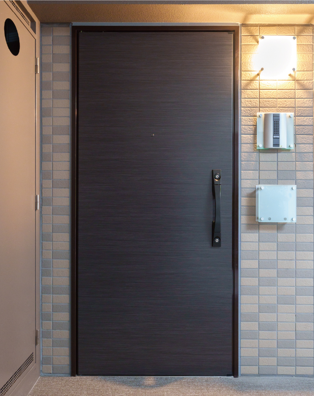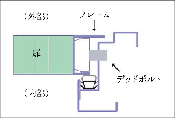 扉は戸先に化粧鋼板と一体化したフレームを通すことによって、錠の金具の状態が外部から見えにくい構造になっています。
