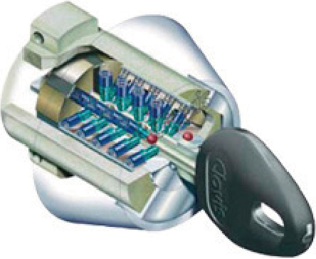 5方向に22本のピンを配置し、理論上鍵違い数は、5兆5千億通りとなります。また、ピッキングなどの不正解錠やドリル攻撃にも強い構造になっています。