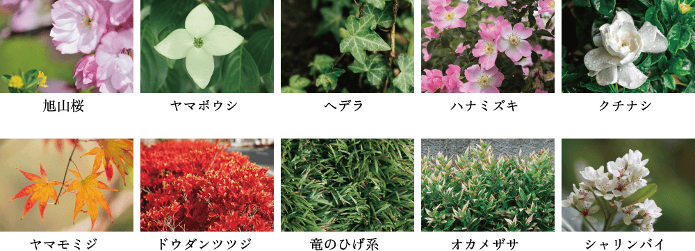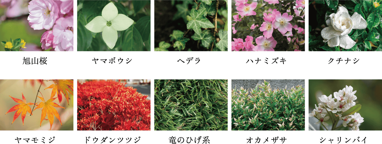 季節ごとに表情を変える樹木や常緑の緑が静かに寄り添います。